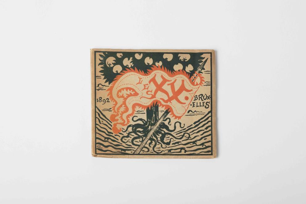 Il s’agit de la couverture du catalogue de l’avant-dernière exposition du cercle artistique des XX. Après 10 ans, des conflits internes et interpersonnels conduisent en 1893 à la dissolution du salon qui renaît l’année suivante en 1894, sous la forme de La Libre Esthétique.
