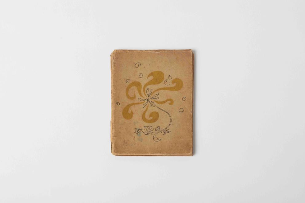 La couverture qu’il propose pour cette exposition reprend la formule puissante qu’il avait déployée l’année précédente pour le catalogue de ce même cercle artistique (à découvrir également dans notre exposition). La densité du motif est équilibrée par son recours à la bichromie : le noir et le rouge. Cette économie chromatique et ces couleurs franches démontrent l’influence chez Lemmen de la tradition de l’imprimerie et des maîtres de l’estampe japonaise. Le traitement des éléments constitutifs de la composition traduit également ce regard vers l’Asie. Le sol évoqué par des lignes noires ondulantes tend à s’étendre vers le ciel suggéré par des vaguelettes, provoquant ainsi un aplatissement de la perspective. Au centre, un robuste arbre fruitier présente des racines dont les enroulements et entrelacements aux allures de méduses suggèrent le renouveau, la vitalité et la force de la nature. Lemmen symbolise-t-il sur cette couverture les aspirations du groupe des XX ? Leur nom est inscrit en rouge vif au centre de la composition sur un étendard aux bordures flammées flottant au vent. La force de cette couverture hisse le catalogue au rang d’objet de collection, à l’instar de l’exposition qu’il documente. Cette prise en compte des détails de l’exposition dans leur globalité est caractéristique des expositions du cercle des XX et plus tard de la Libre Esthétique. L’esthétique raffinée de leurs évènements tendant vers un art total se distingue ainsi des salons officiels dont ils cherchent à se différencier.