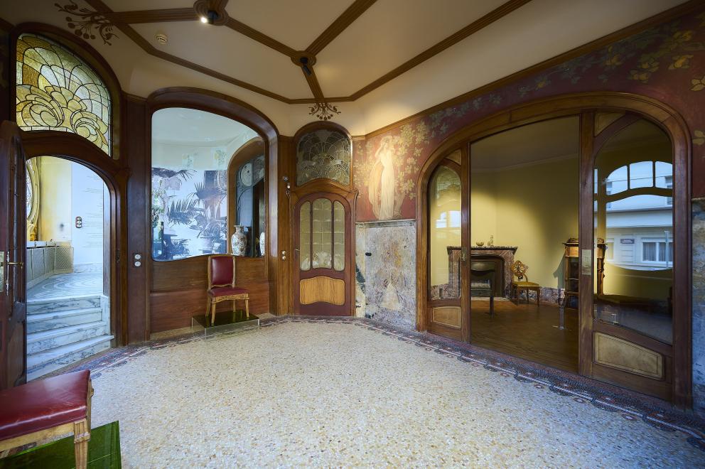 Nous vous invitons à débuter ici votre visite de l’exposition temporaire, Échos des songes. Le symbolisme à Bruxelles, et l’univers de la famille Hannon. L’exposition se poursuit au premier étage, en commençant par la salle de bain (à droite).