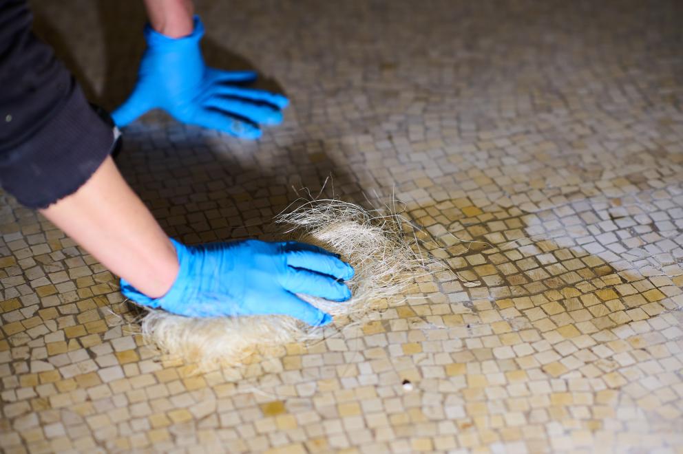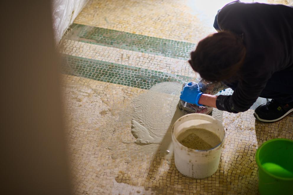 Pour l'ouverture de la Maison Hannon au public, il était très nécessaire de redonner aux marbres et aux mosaïques leur beauté d'origine. De février à avril 2023, Camille Meslay a travaillé méticuleusement pour leur redonner leur éclat.