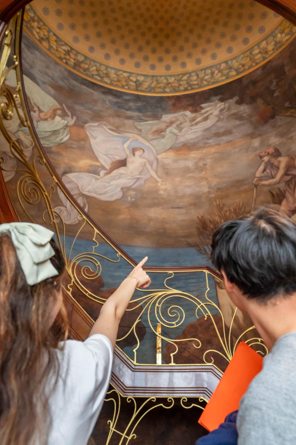 De restauratie van de geschilderde wanddecoraties in de serre van het Maison Hannon
